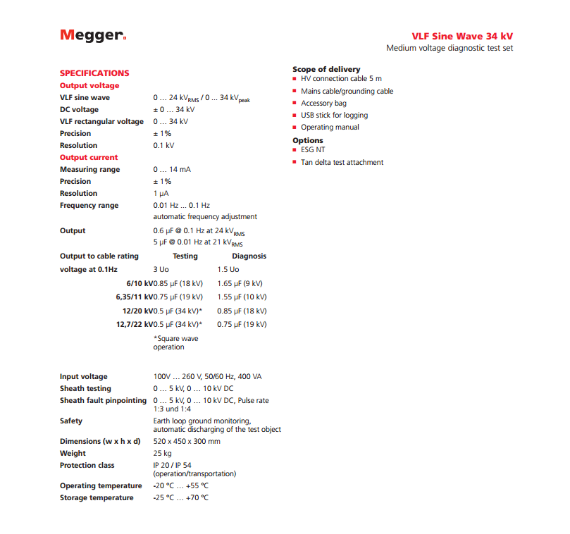 美國MEGGER 電纜測試儀 VLF Sine Wave 34 kV