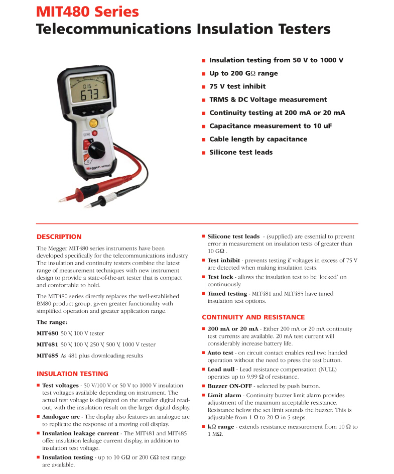 MEGGER MIT481/2 絕緣電阻測試儀 MIT481/2