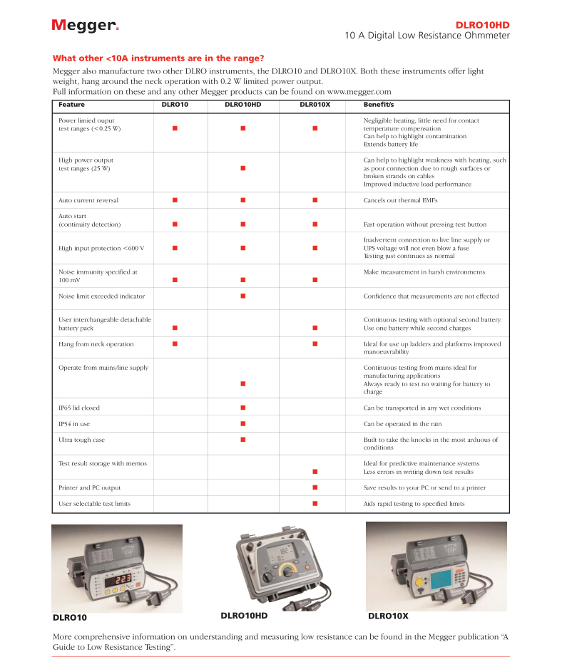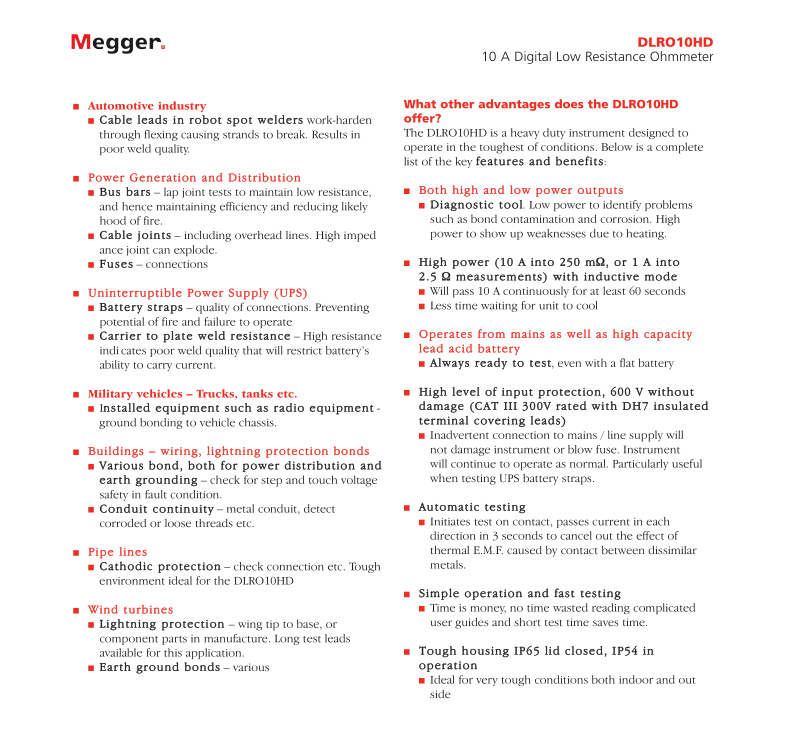 美國(guó)MEGGER 雙電源10 A低阻歐姆表 DLRO10HD