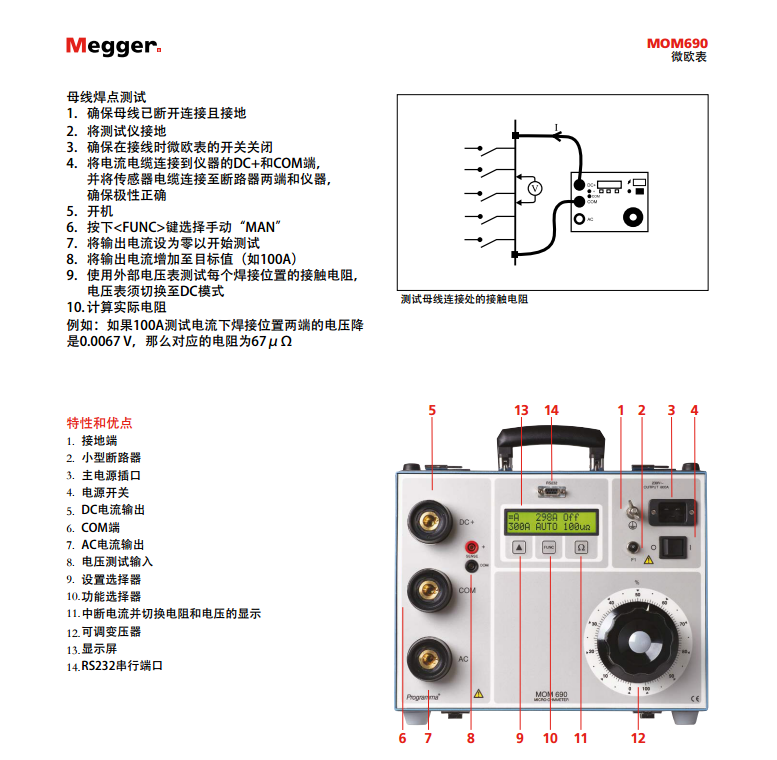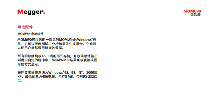 美國MEGGER 內(nèi)置測試控制的微歐表 MOM690A