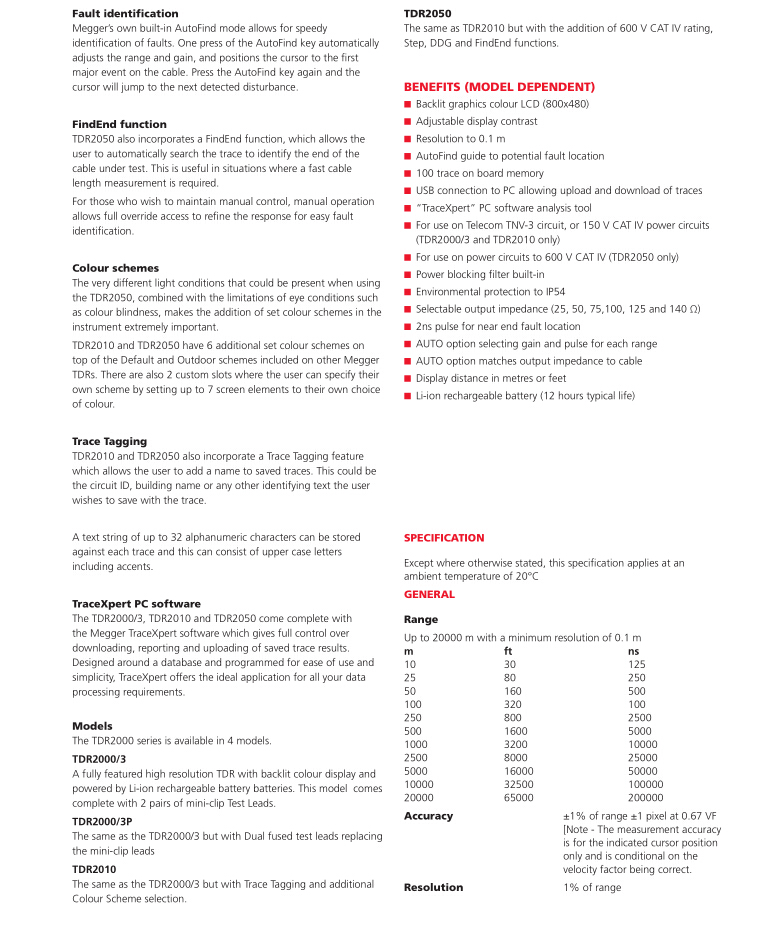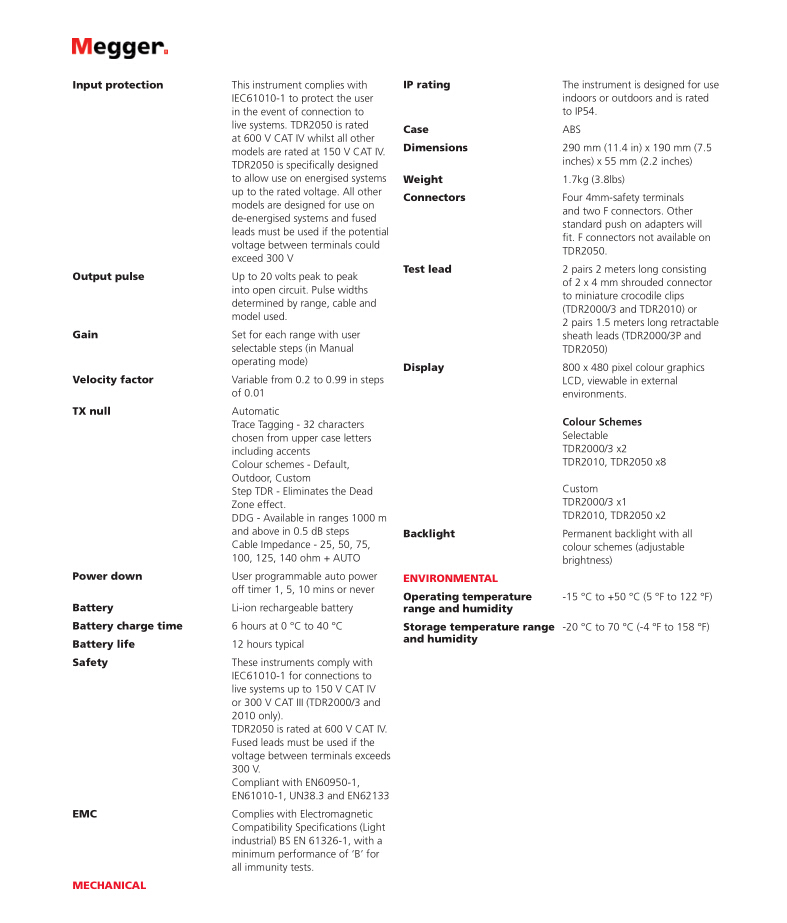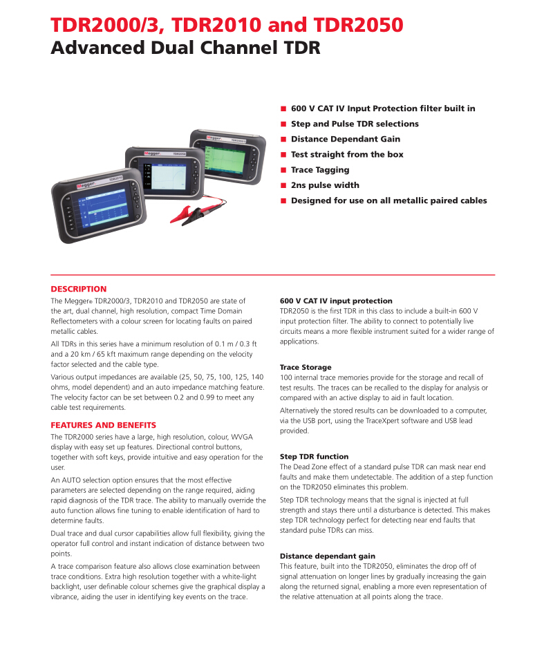 美國MEGGER 電力應(yīng)用的雙通道電纜故障定位儀 TDR2050