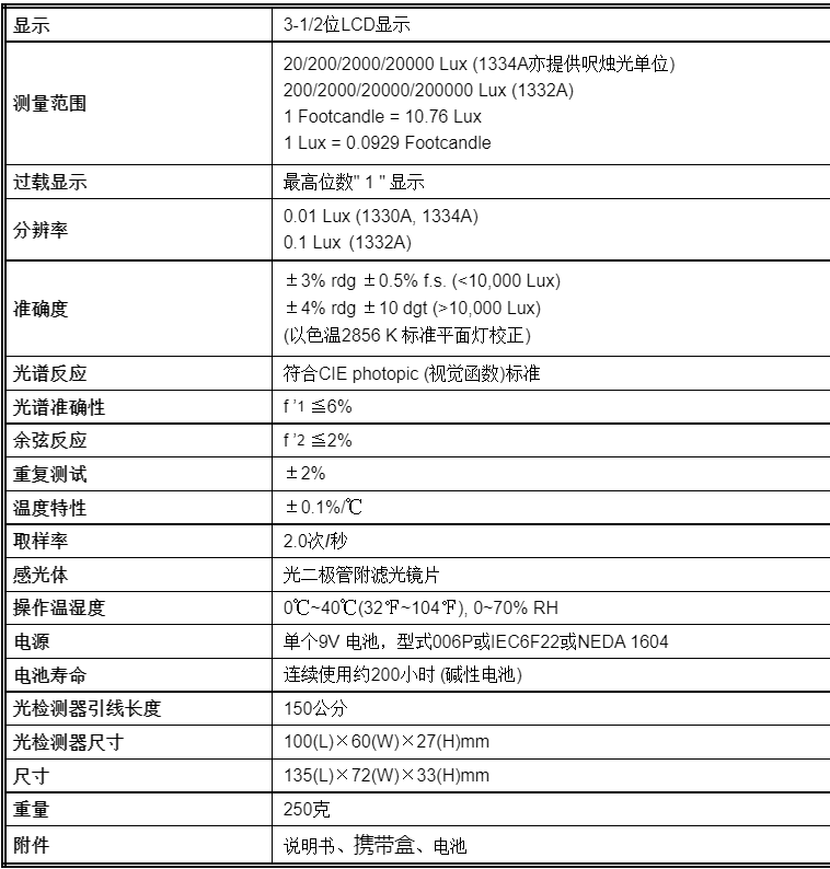 測量范圍自0.01 Lux至200,000 Lux