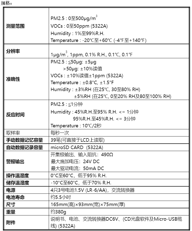 混合氣體(VOCs-揮發(fā)性有機(jī)化合物)之測(cè)量,對(duì)H2、 C2H5OH、C4H10、CO及CH4具有高靈敏度(TES-5322A)