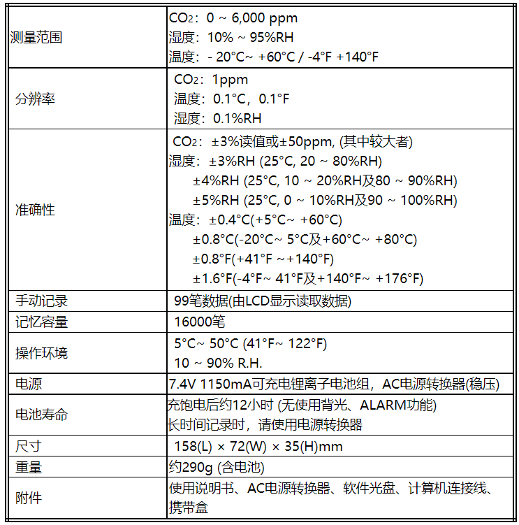CO2 :0~6,000 ppm,擴(kuò)散式取樣。