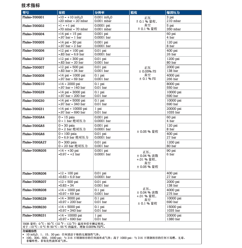 美國福祿克FLUKE Fluke 700GA6 便攜式精確壓力校驗