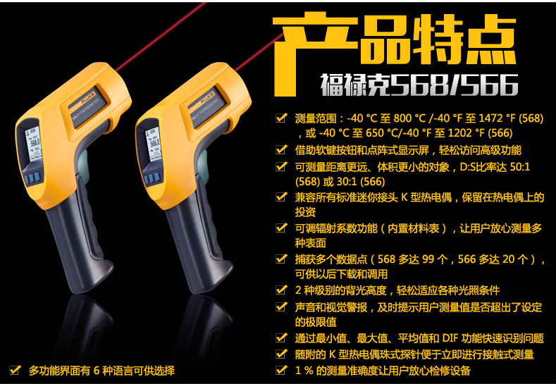 美國福祿克Fluke 568-2紅外和接觸式二合一測溫儀 -35℃—850℃