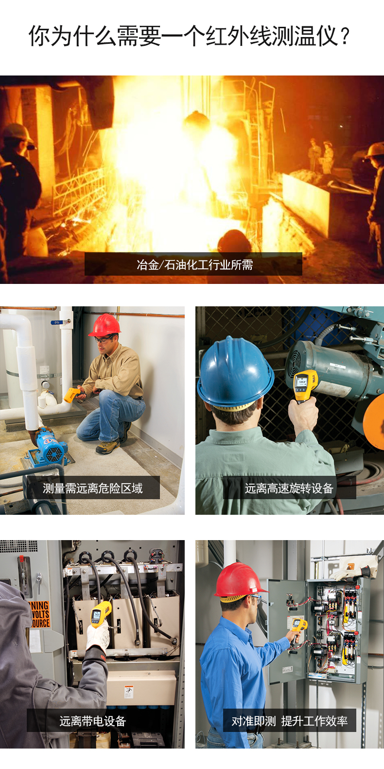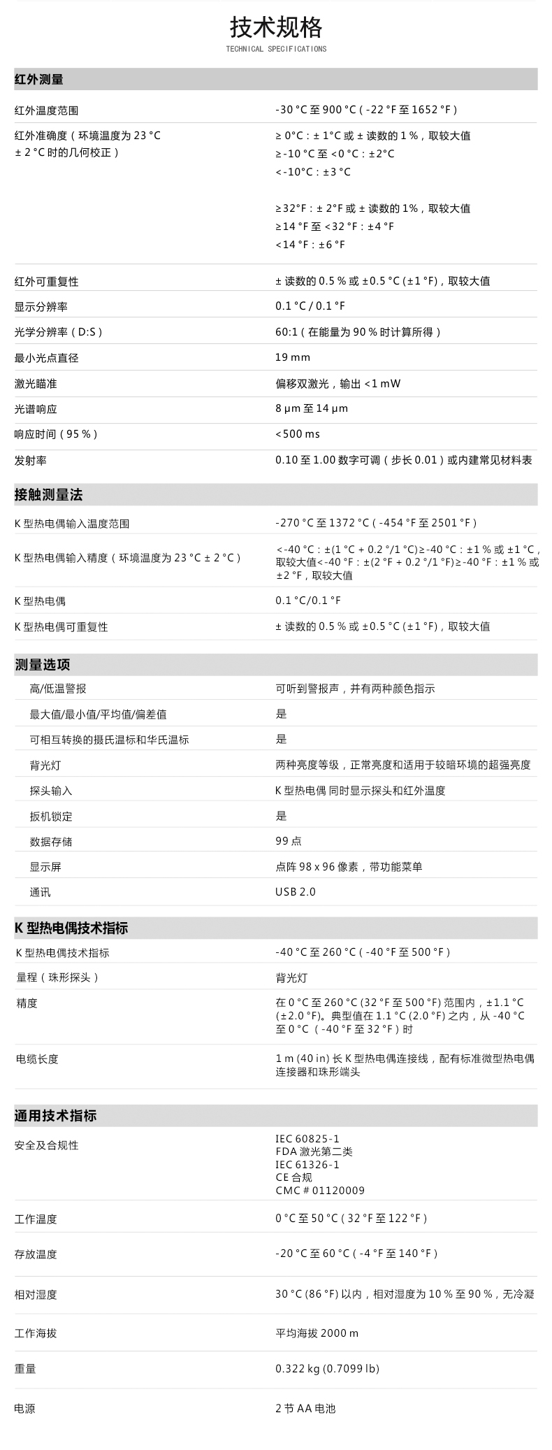 測(cè)量溫度范圍為 -30 °C 至 900 °C(-22 °F 至 1652 °F),60:1 的距離光點(diǎn)比以及雙激光瞄準(zhǔn)系統(tǒng),可以快速準(zhǔn)確定位目標(biāo),當(dāng)前溫度及大、小、溫差和平均溫度顯示